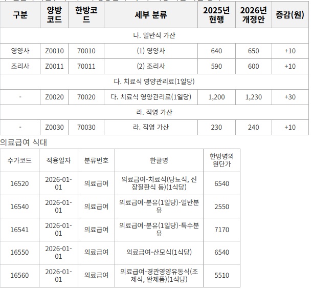 신?구조문대비표(입원환자 식대) - 현행 vs 개정안