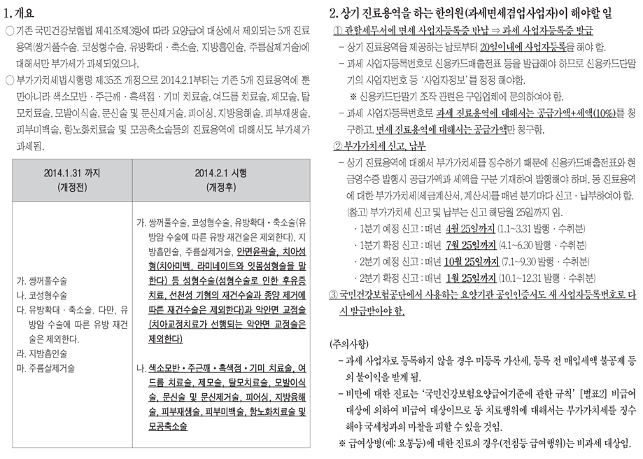 미용·성형 진료용역 부가세 과세 확대 시행 (2014. 2. 1부터)