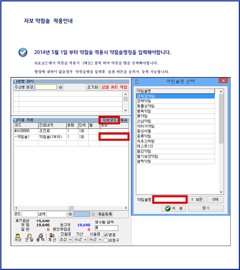 자보 약침술 2014년 5월 1일 시행 안내