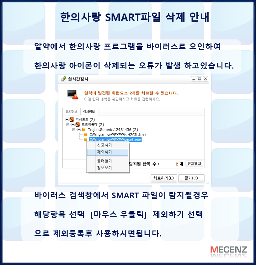 한의사랑 스마트 아이콘 삭제 대처 안내