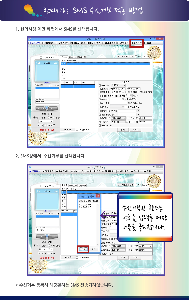 - 전송자의 명칭 및 연락처 [ SMS 발송시 명칭및 연락처 필수입력 ]