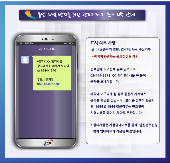 개정된 법에따라 SMS 서비스를 이용하는 모든 기업, 기관에서는 위 사항을 준수해야 하며 개인정보 및 SMS