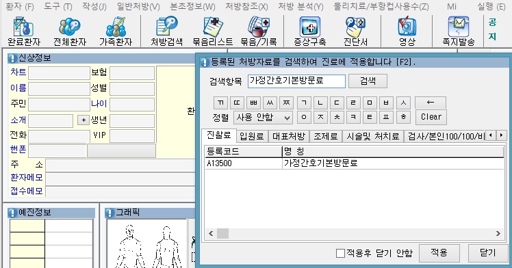 5. 가정간호기본방문료 추가 db업그레이드 - 가정간호기본방문료가 추가되었습니다.