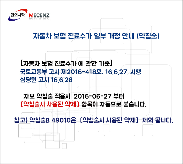 [팝업] 2016년 6월 28일 자동차 보험 약침술 수가 개정 안내
