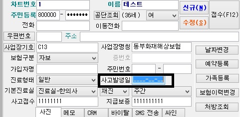 자보환자 접수시  사고 발생일을 별도로 입력할 수 있습니다.