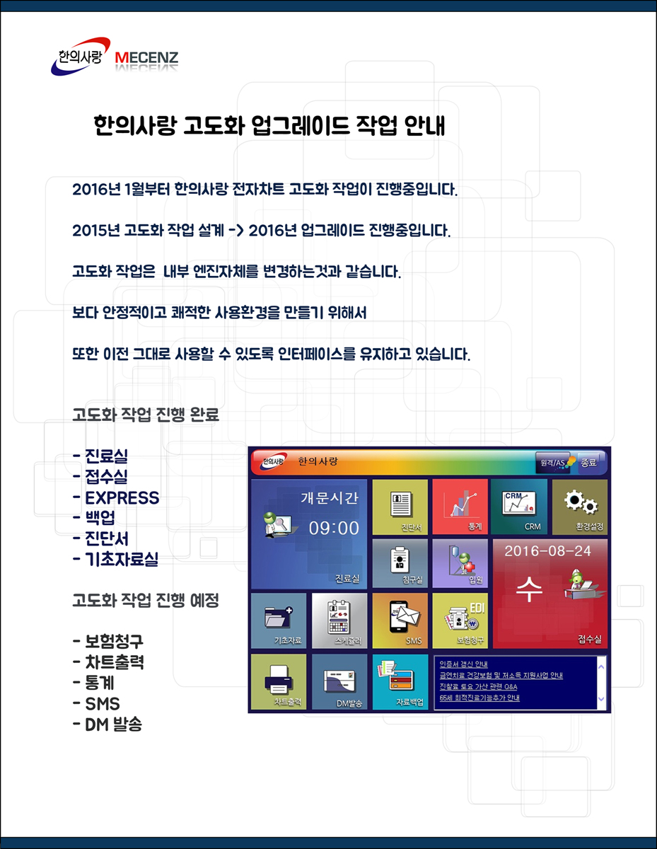 [2016년 8월] 한의사랑 고도화 업그레이드 안내