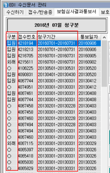 수신문서에서 청구된월을 리스트별로 클릭하지않고