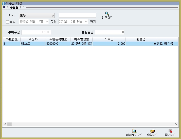 접수실 미수금대장 검색옵션이 추가 되었습니다.